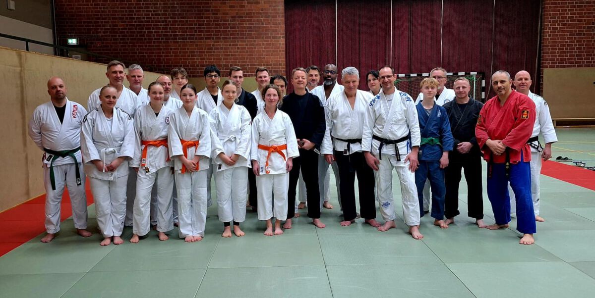 Jugenheim. Am vergangenen Samstag, 28.03.2026, richtete die Abteilung Jiu-Jitsu des TV Jugenheim einen Landes-Techniklehrgang des Jiu-Jitsu-Verbandes Rheinland-Pfalz e. V. zum Thema „Verteidigung gegen Messerangriffe“ in der Jugenheimer Bürgerhalle aus. An dem vierstündigen Lehrgang unter der sportlichen Leitung des rheinland-pfälzischen Landes-Lehr- und Prüfungsreferenten Klaus Schmidt (5. Dan Jiu-Jitsu, 4. Dan Modern Arnis) nahmen rund 30 begeisterte Jiu-Jitsuka verschiedenster Graduierungen aus Hessen und Rheinland-Pfalz teil.