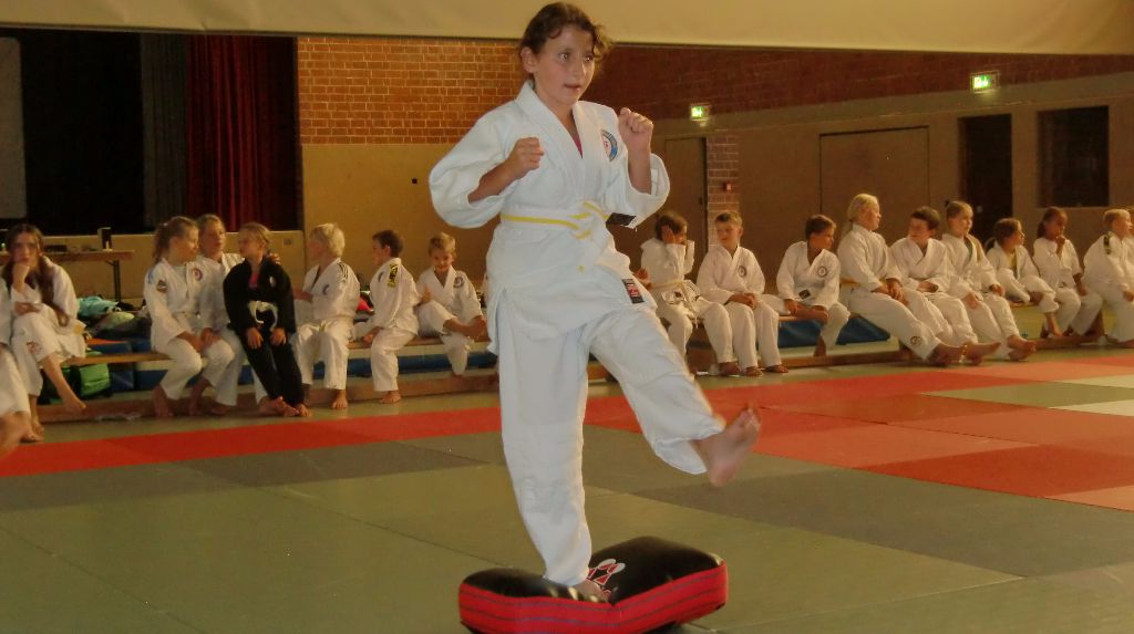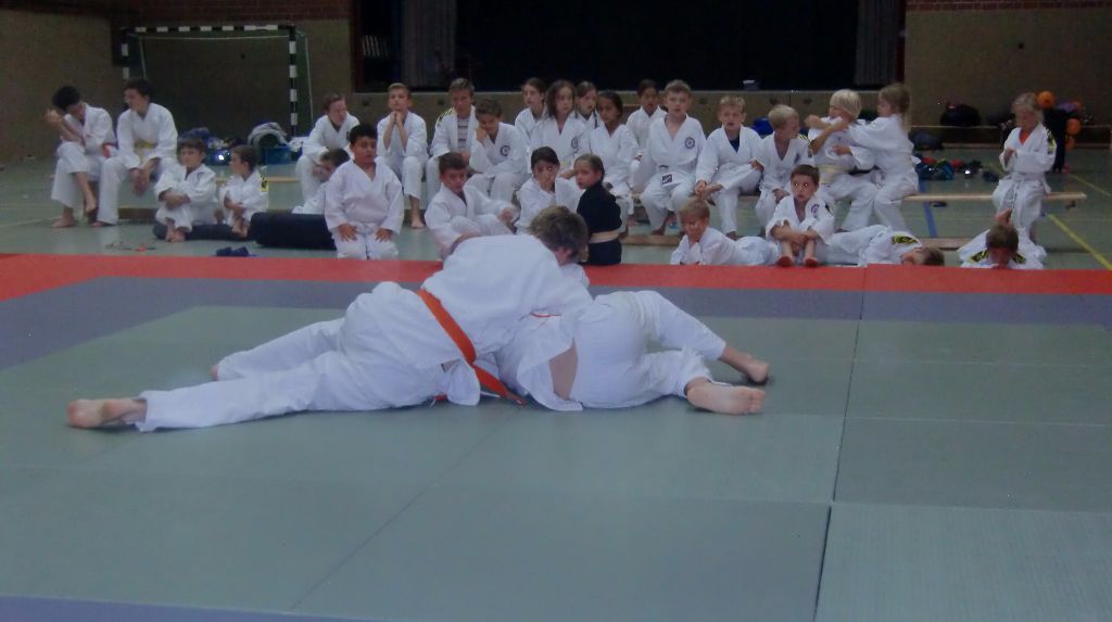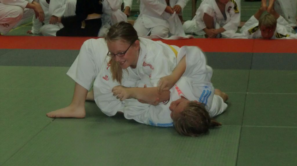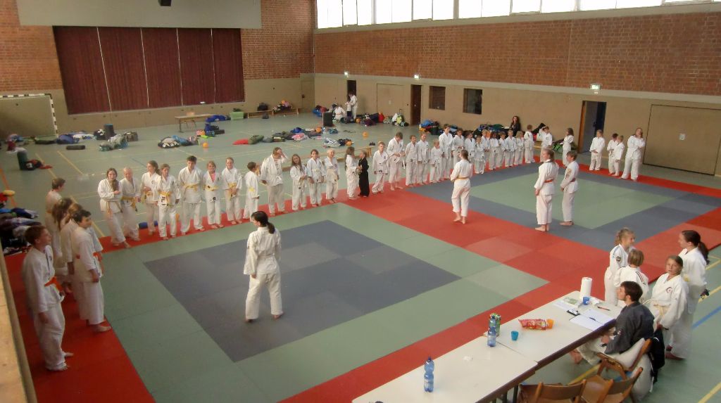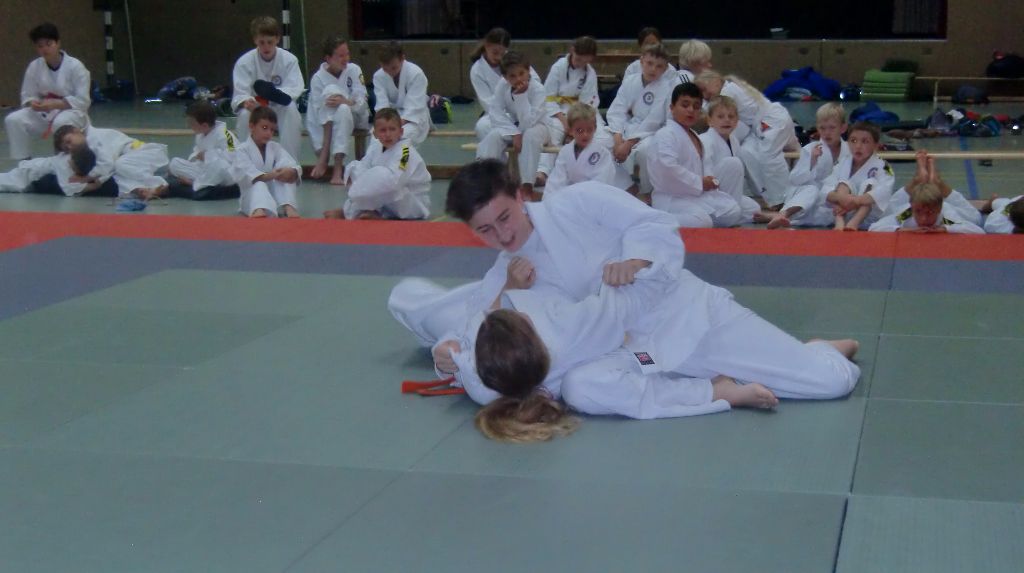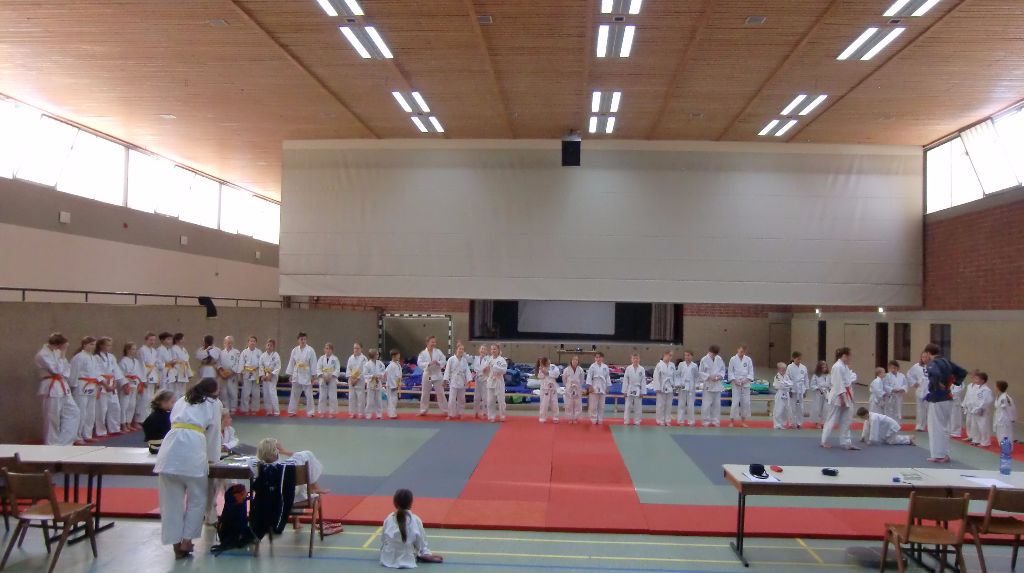 Wie die vergangenen fünf Jahre schon, fand auch dieses Jahr wieder unsere berühmt berüchtigte Jiu-Freizeit in der Bürgerhalle in Jugenheim statt. In der Zeit vom 02.09.2016 – 04.09.2016 stellten sich fast fünfzig Kinder und Jugendliche der Aufgabe, vor unseren Prüfern ihre Fähigkeiten unter Beweis zu stellen und so ihr Sportabzeichen zu erlangen. Neben hartem Training kamen jedoch auch Spiel und Spaß nicht zu kurz: Freizeit im Christina-Stock-Stadion, ein Natale- Besuch, Disco am Abend und Filmnächte sorgten für die rechte Entspannung zwischendrin, diesmal ganz ohne Eltern. Auch für das leibliche Wohl war gesorgt: bei Pizza und Lasagne von Da Rino in Bickenbach und gespendeten Knabbereien der Firma Intersnack tankten die Schützlinge neue Kraft und gingen frisch gestärkt zurück an ihre Aufgaben, die sie mit Bravour meisterten. Am Ende gab es für alle Teilnehmer das verdiente Sportabzeichen, welches im Rahmen der diesjährigen Weihnachtsfeier am 16.12.2016 überreicht wird. Wir bedanken uns nochmal bei allen Helfern die diese Freizeit erst ermöglicht haben.