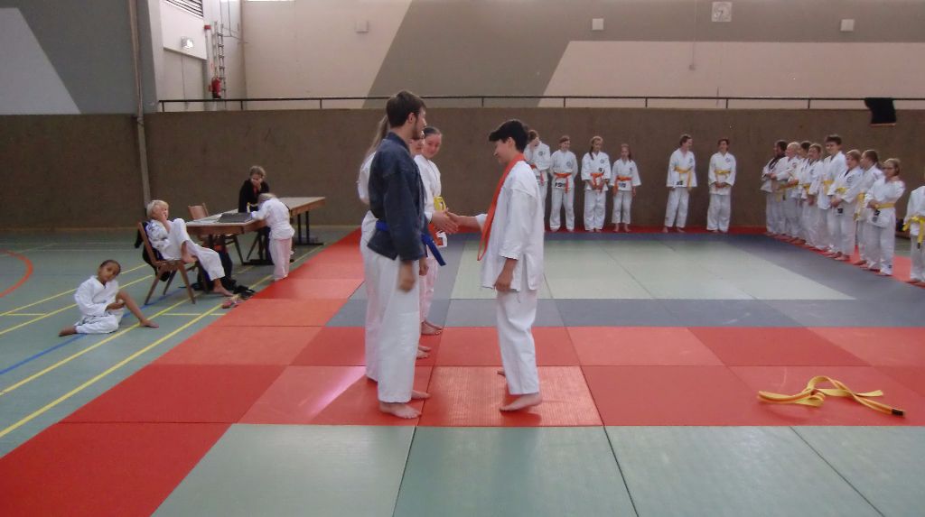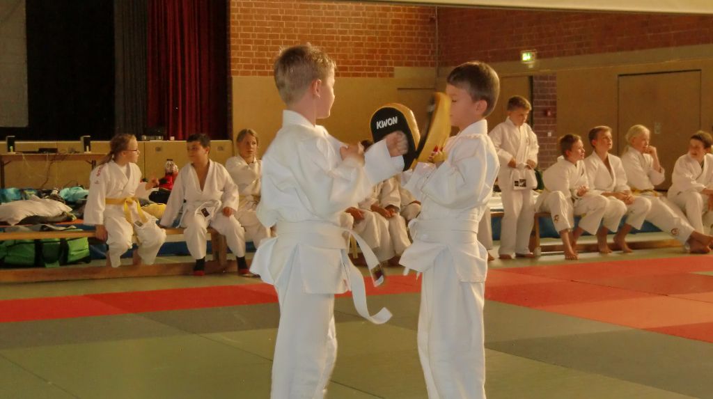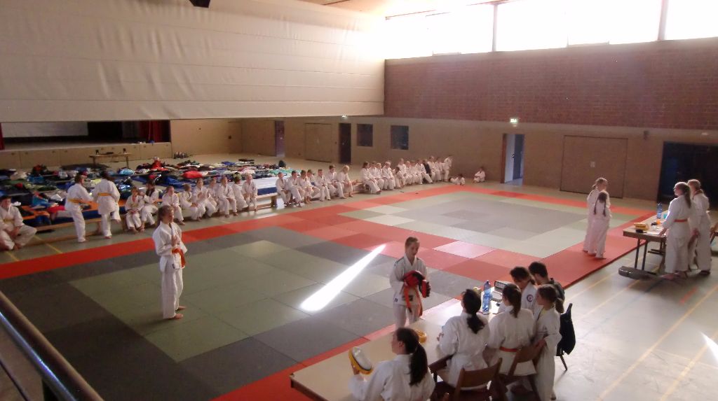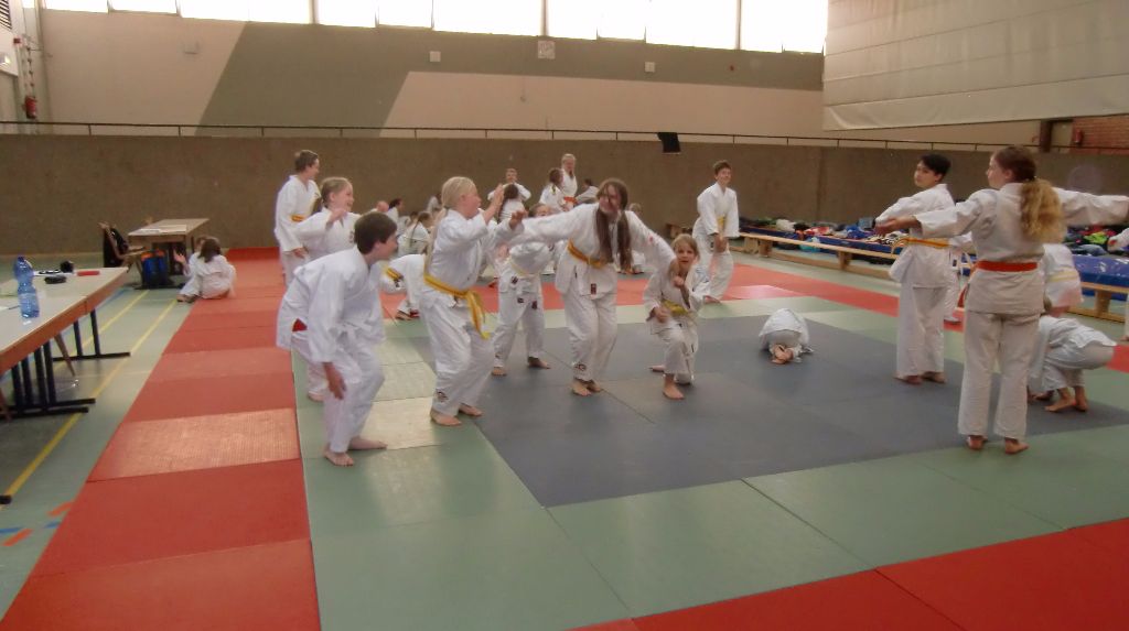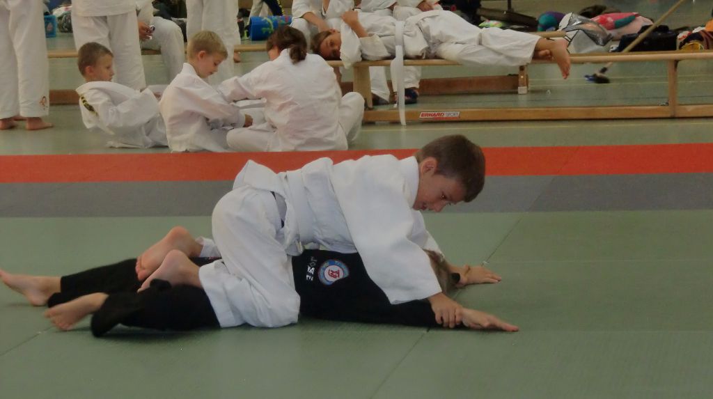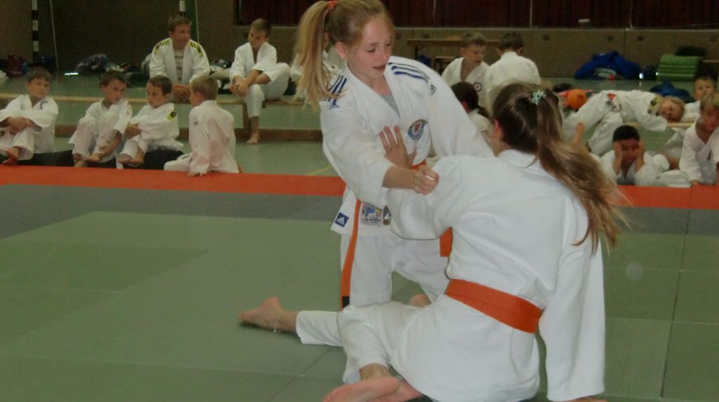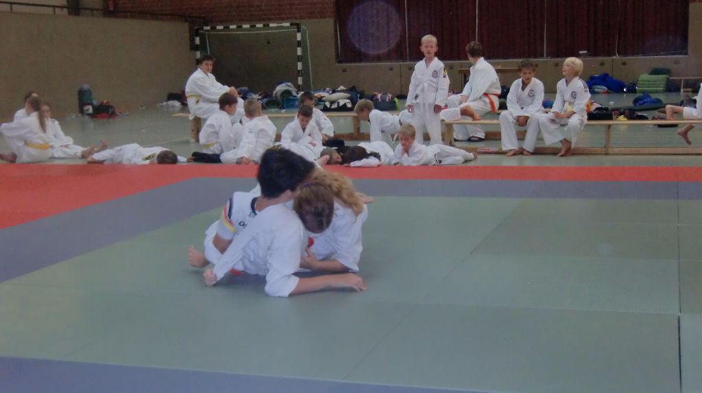 Wie die vergangenen fünf Jahre schon, fand auch dieses Jahr wieder unsere berühmt berüchtigte Jiu-Freizeit in der Bürgerhalle in Jugenheim statt. In der Zeit vom 02.09.2016 – 04.09.2016 stellten sich fast fünfzig Kinder und Jugendliche der Aufgabe, vor unseren Prüfern ihre Fähigkeiten unter Beweis zu stellen und so ihr Sportabzeichen zu erlangen. Neben hartem Training kamen jedoch auch Spiel und Spaß nicht zu kurz: Freizeit im Christina-Stock-Stadion, ein Natale- Besuch, Disco am Abend und Filmnächte sorgten für die rechte Entspannung zwischendrin, diesmal ganz ohne Eltern. Auch für das leibliche Wohl war gesorgt: bei Pizza und Lasagne von Da Rino in Bickenbach und gespendeten Knabbereien der Firma Intersnack tankten die Schützlinge neue Kraft und gingen frisch gestärkt zurück an ihre Aufgaben, die sie mit Bravour meisterten. Am Ende gab es für alle Teilnehmer das verdiente Sportabzeichen, welches im Rahmen der diesjährigen Weihnachtsfeier am 16.12.2016 überreicht wird. Wir bedanken uns nochmal bei allen Helfern die diese Freizeit erst ermöglicht haben.